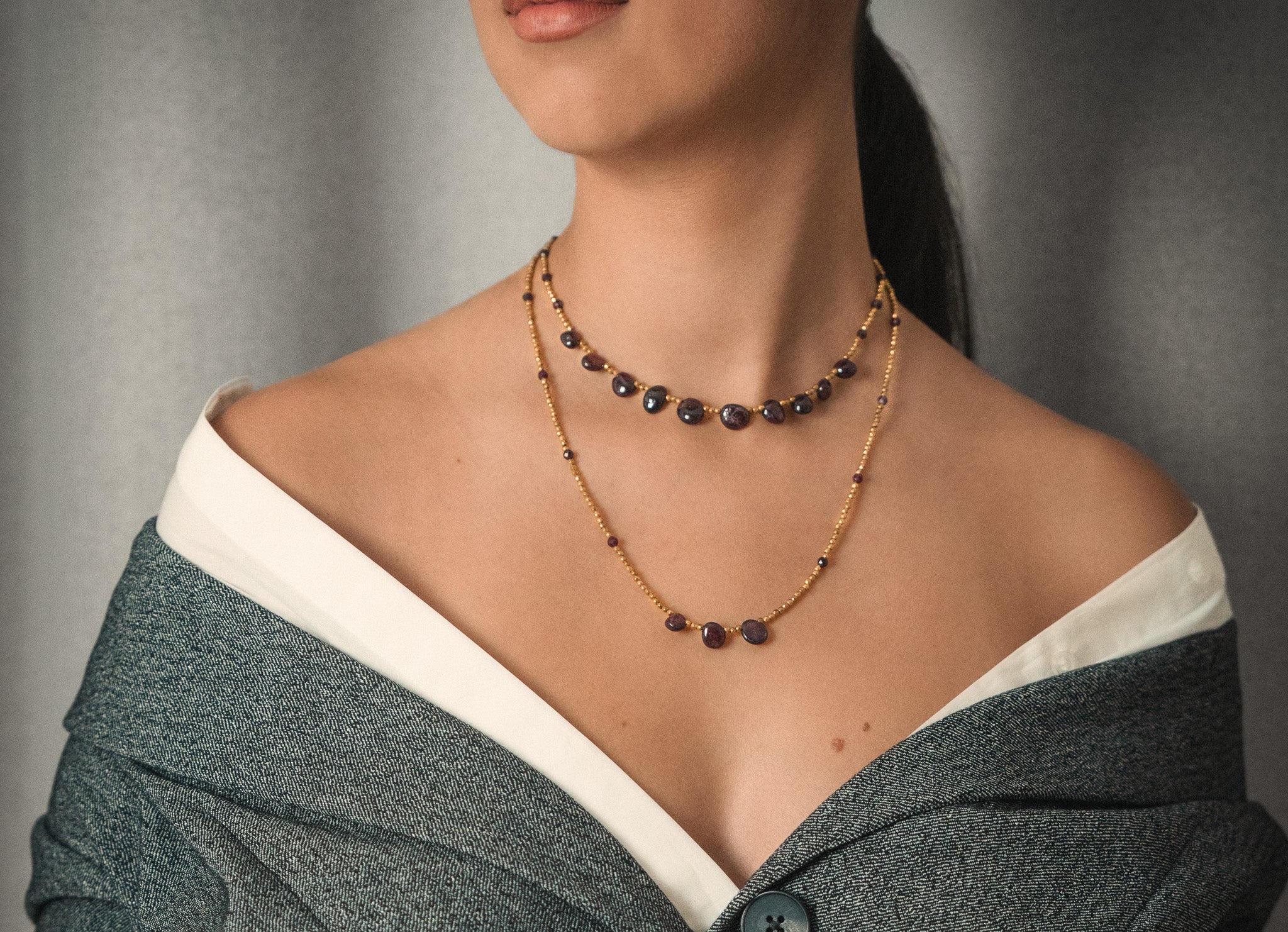 Hematite Necklace - Garnet Pair